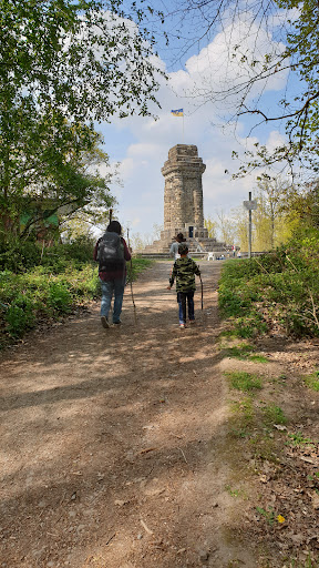 Warum ist dieser Ort für mich gut, von hier aus beginnt eine wunderbare Wanderroute durch die Hügel, den Wald, in gutem Zustand, ziemlich sauber. Sie können die Länge der Route und die Komplexität wählen. Es ist ziemlich einfach, mit öffentlichen Verkehrsmitteln von Düsseldorf zu gelangen. Was wir tun. ich gehe hier sehr gerne spazieren. Der Turm selbst hat eine Geschichte von etwa 100 Jahren, aber das steht auf Wikipedia. Dabei ist es aus Stein, es ist organisch, umweltfreundlich, es passt hierher und stört die Natur nicht, es erinnert an die Vergangenheit....