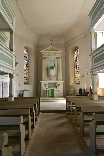 Der Innenraum ist schlicht und gleichzeitig eindrucksvoll, mit liebevollen Details und einer ganz besonderen Atmosphäre. Auch der kleine Friedhof ringsum ist sehr gepflegt und verstärkt die friedliche Stimmung.