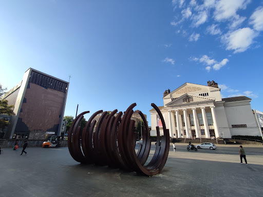 Vor dem Duisburger Stadttheater, ist eine Stahl Skulptur zu sehen, mit der Bezeichnung “ 5 ARCS X 5 “. Mit der Gestaltung, und der Namengebung, kann sicherlich nicht jeder etwas anfangen. Es liegt im jeweiligen Auge des Betrachters, was er hier zu sehen bekommt....eventuell ein Walfisch Skelet aus Corten-Stahl ?...oder etwas anderes, das an irgend etwas aus der Stadt-Geschichte erinnern soll...