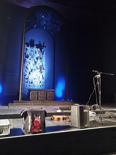 Die Räumlichkeiten sind sehr beeindruckend, gerade eine Veranstaltung mit Sprachperformances bekommt ein ganz anderes Gewicht in so einer Räumlichkeit. Der Stimmung und Atmosphäre hätte etwas Licht und Unterstützung der Räumlichkeit durch Licht geholfen.