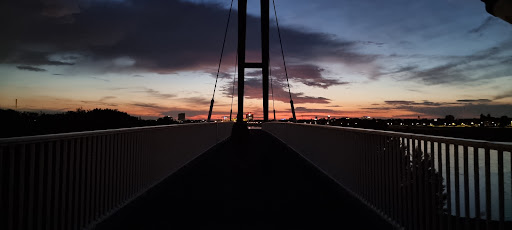 Read moreDie Brücke am Medienhafen in Düsseldorf ist ein beeindruckender Ort, den ich jedem empfehlen kann, der die Stadt besucht. Von dieser Brücke aus hat man einen fantastischen Blick auf den Rhein und die modernen architektonischen Wahrzeichen der Stadt, einschließlich des Hyatt Hotels.