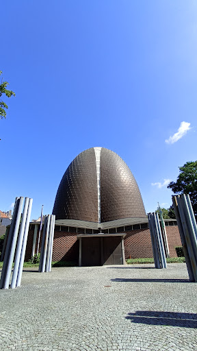 Read moreDie katholische Kirche St. Rochus im Düsseldorfer Stadtteil Pempelfort ist ein Objekt der sakralen Nachkriegsmoderne. Mit einer eierförmigen Kuppel, stellt sie einen interessanten stilistischen Kontrast zum alten, in unmittelbarer Nähe stehenden Kirchturm dar. Die alte Kirche wurde im zweiten Weltkrieg zerstört und blieb vorerst als Ruine bestehen. 1950 entschied die Gemeinde die Ruine nicht mehr aufzubauen und wurde mit Ausnahme des Glockenturms gesprengt. Der alte Kirchturm blieb mit verkürztem Turmhelm und entferntem Hauptportal als Mahnmal bestehen. Die neue Kirche wurde von Gemeindepfarrer Peter Heinrich Dohr entworfen und in der Statik berechnet, der Architekt Paul Schneider-Esleben übernahm die Ausführung. Der Kirchenraum unter der eiförmigen Kuppel wurde rund um den ehemaligen Hochaltar gebaut. Die Fassade aus rautenförmigen Ziegeln wird von einem durchlaufenden Wellenband belebt. Fassade und Dachaufbau sind durch ein durchlaufendes Lichtband getrennt. Mittels einer Stahlkonstruktion werden die beiden Paraboloidschalen zu einem Ganzen zusammengehalten. Der Raum zwischen Kirche und altem Turm bildet heute den Vorplatz, einige Stilelemente markieren den Verlauf des ehemaligen Langhauses. Grundstein, Taufbecken, Kanzel, Altar, Sedilien und mehrere sakrale Gegenstände sind das Werk des Bildhauers Ewald Mataré und seiner Studenten. Der radikale Neubau, vermittelt mit seiner eiförmigen Gestaltung symbolisch Neuanfang und Aufbruch, und damit auch ein Fingerzeig auf die Zukunft von Sakralbauten. Auch wenn der Anblick überraschend ist, ist es ein durch und durch kunstvolles und...