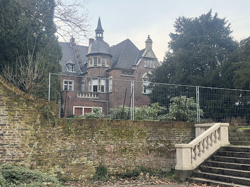 Read moreWer hier wirklich ein Schloss erwartet, wird herbe enttäuscht. Für mich handelt es sich hierbei um Reste eines Herrenhauses mit einem wunderbaren Park, der allerdings auch nicht besonders groß ist. Daran angeschlossen ist bekanntermaßen das Krankenhaus Elbroich. Der Park ist deswegen sehr schön, weil hier viele Spielmöglichkeiten für Kinder sind. Und nicht zu vergessen wunderschöne alte Bäume und schöne gepflegte Wege. Allerdings ist er zum Beispiel im Vergleich zum Schlosspark Eller viel viel kleiner und viel weniger abwechslungsreich. Von außen gesehen kann ich mir das Gebäude auch nicht als Eventgebäude vorstellen. Möglicherweise sieht es von innen viel besser aus. Gut wir haben es jetzt einmal gesehen. Die Sterne gehen alleine an die schönen alten Bäume...
