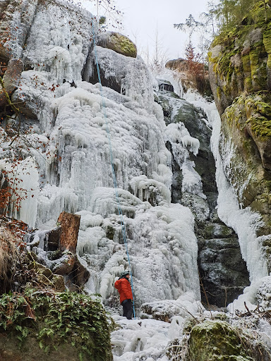 Read moreDer Wasserfall befindet sich in unmittelbarer Nähe eines (leider gebührenpflichtigen) Parkplatzes und ist von dort aus schon zu erkennen. Wenn im Sommer wenig oder gar kein Wasser fliesst, dürfte es hier allerdings recht unspektakulär zugehen. Wir waren an einem Samstagmorgen Mitte Januar hier, der zugefrorene Wasserfall bot zu dieser Zeit, vor allem kurz nach Sonnenaufgang im oberen Teil in goldenes Licht getaucht, einen erhabenen Anblick und Fotomotive satt. Die einstündige Anreise hat sich voll gelohnt. Sobald es wärmer wird und das Eis abgeschmolzen ist, lohnt es vermutlich nicht mehr, extra deswegen...