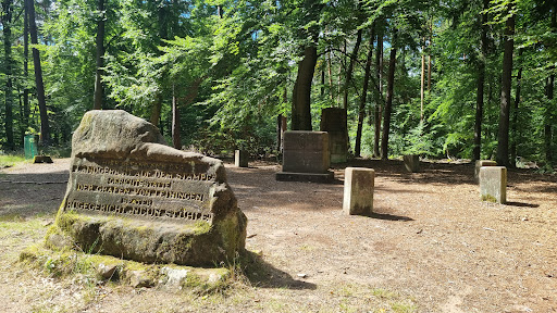 Es handelt sich hier um eine 1933 errichtete Gedenkstätte fuer das ehemalige Waldgericht der sog. Neunmaerker, 9 Gemeinden die über den Stumpfwald im Mittelalter zur Zeit der Staufer die Gerichtsbarkeit stellten. Das urspruengliche Waldgericht befand sich ca. 280m südlich und nicht am Ort von heute direkt an dem Grenzstein der Waldgemarkungsgrenze direkt westlich an der alten Stumpfwaldstrasse die vermutlich schon seit spaetroemischer Zeit dort entlanglief - von der aber heute nichts mehr zu sehen ist. Auch die Steine des alten Waldgericht sind heute komplett verschwunden. Das heutige Denkmal wurde von der Gemeinde Alsenborn in der Zeit der Nationalsozialisten daher am falschen Ort errichtet. Dennoch ist der Ort sehenswert und fuer einen Besuch empfehlenswert. Dazu kommt, dass von diesem Ort aus die Landstraße zwischen Alsenborn und Ramsen, sowie Neuhemsbach und der Eiswoog gleichermaßen von dort über Waldwege erreichbar sind, sodass sich der Ort als Zwischenziel fuer Wanderungen und Radtouren durch den oberen Stumpfwald anbietet .Daher passierte ich den Ort jedes Jahr häufig und verweilte dort auch bisweilen. Ausserdem steht dort eine schoene Holzbankgarnitur aus zwei Baenken mit einem Tisch, sodass sich der Platz immer fuer eine kurze...