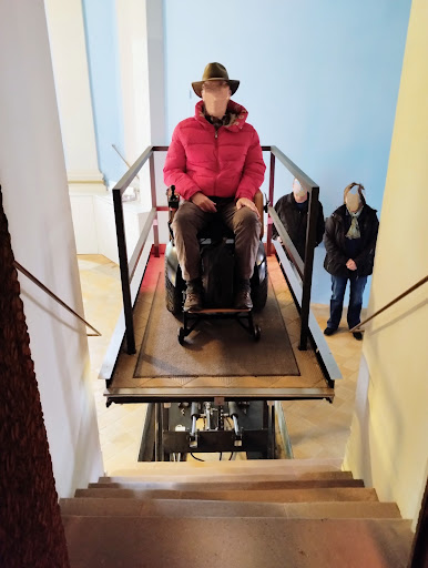 ♿ Das Museum ist weitgehend barrierefrei gestaltet, für Rolli-Fahrer gibt es eine Hebebühne um die Ausstellungsräume zu erreichen 👍. Allerdings ist der angelegte Rundgang in weiten Bereichen recht schmal, mit engen Ecken und Kehrrungen sowie steilen Anstiegen oder Gefälle. Diese Wege sind obendrein tief schwarz designt und arg spärlich beleuchtet - dadurch ist das Durchkommen mit dem Rolli nicht so einfach - Vorsicht und Geschick sind von Nöten!