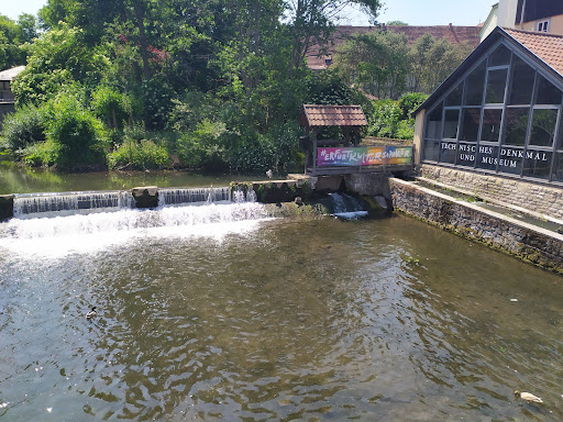 Read moreDie Neue Mühle ist ein technisches Museum an der Schlösserbrücke in der thüringischen Landeshauptstadt Erfurt. Sie liegt an einem Nebenarm des kleinen Flusses Gera, welcher die Wasserkraftanlage der Mühle betreibt. Sie beinhaltet eine Getreidemühle mit einem unterschlächtigen Zuppinger-Wasserrad und ist die letzte funktionsfähige Mühle von ehemals 60 in der Stadt. Ihren Namen als „Neue Mühle“ trägt sie seit ihrem Wiederaufbau nach dem Brand von 1735. Besonders interessant ist der erhalten gebliebene Materialfluss über alle Etagen mittels Gurtbecherwerk. Es sind neben einem Mahlgang auch historische Walzenstühle, mehrere Plansichter und ein...