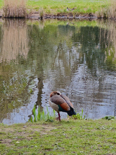 Read moreОтличный парк. Чистый. Ухоженный. Здесь каждый находит возможность заниматься тем, что любит: кто-то делает прогулки с детьми, кто-то читает, кто-то присел отдохнуть в свой рабочий полдень, кто-то медитирует, кто-то общается с друзьями. Здесь всегда что-то цветет. В наше последнее посещение порадовала пышным цветением спирея Ван-Гутта и сирень. Огромные поляны, характерные для немецких парков, полны сочной свежей травой. На площадке играют дети. В пруду много водоплавающих птиц. Интересно наблюдать за поведением уток и гусей, особенно тогда, когда у них появилось потомство. Один из родителей плывет впереди, следом за ним - малыши ; замыкает этот строй вторая взрослая особь. Таким образом малыши чувствуют себя под защитой внимательных родителей. Селезни гоняют конкурентов от своих подруг, проявляя при этом крайнюю агрессивность. А однажды дали посмотреть на особенности своих взаимоотношений 3 водных петушка и 1 курочка. Пока два петушка дрались, курочка и третий петушок наслаждались друг другом. Зрителей это очень рассмешило. Дно в пруду время от времени чистят. Биотуалет в парке огорчил. Санитарное состояние оставляет желать лучшего. Деревья дарят густую тень и дают прекрасный отдых в знойный полдень. Публика приходит разнообразная: немцы, украинцы, турки, арабы. Прекрасное место для семейного отдыха. Транспортное сообщение отличное - доехать можно...