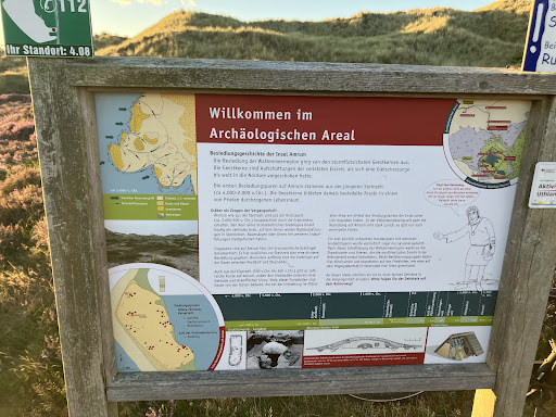 Read moreSeit 2014 steht in den Amrumer Dünen der Nachbau eines eisenzeitlichen Hauses. Das Gerüst des Hauses, in dem sich Wohnbereich und Stall unter einem Dach befinden, wurde aus Eichenholzstämmen errichtet. Das Gebäude ist fünfeinhalb Meter breit und 15 Meter lang. Das Reetdach misst über 5 Meter Höhe. Die Feuerstelle befindet sich in der Mitte des Wohnbereichs. Das Holzflechtwerk der Hauswände wurde mit Soden abgedeckt und mit Lehm...