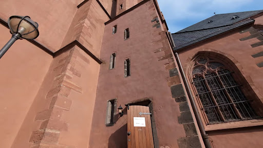 Great addition to the cathedral tour is the climb to the tower and enjoy stunning views of Frankfurt. Climbing through the narrow twisting staircase (over 300 steps) was a bit challenging even for me. There was not much space to avoid other visitors - one must stop and wait for others to pass - therefore the walk up took me some time. At the platform, there was not much space either, it was hard to avoid/pass other visitors (especially the ones with backpacks) and it could be a bit claustrophobic for some. Seating at the stone ledges of the cathedrals tower was available.