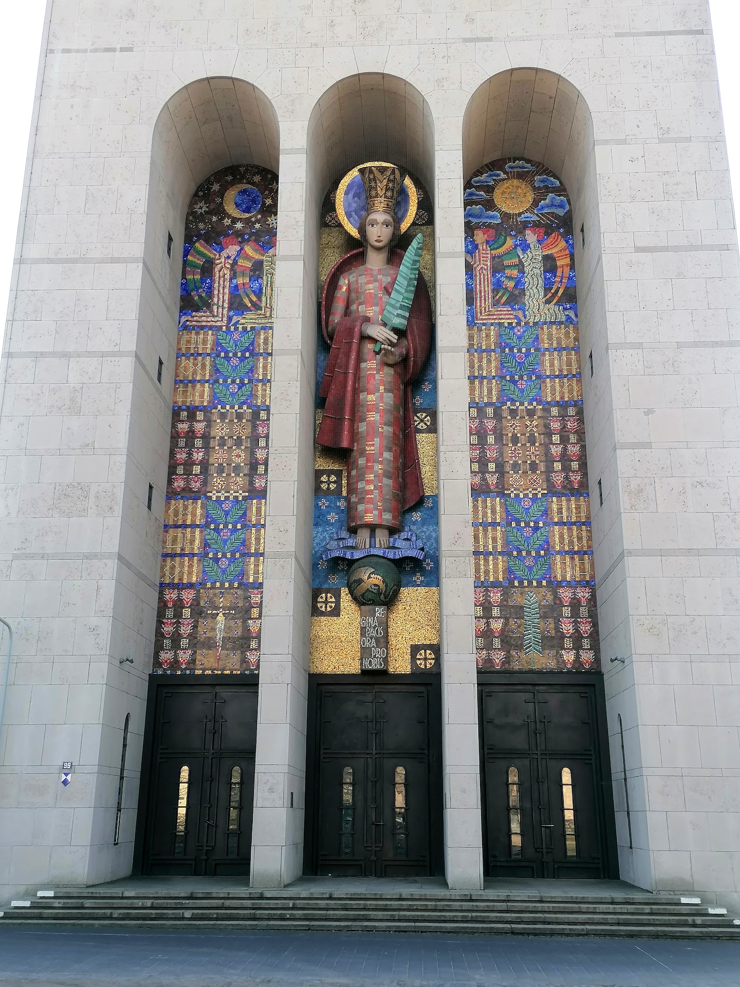 Read moreBoa, was ist denn das?, mag der unbedarfte Autofahrer denken, wenn er in Bockenheim von der Zeppelinallee nach rechts in die Franz-Rückert-Straße abbiegt und ihm beim Blick nach links aus einem der drei Rundbögen der Fassade des gegenüberliegenden mächtigen Portals eine riesige bunte Statue ins Blickfeld gerät. Klar, eine Kirche. Aber was für eine? Orthodox? Nein, es ist die 1929 errichtete Frauenfriedenskirche und die zwölf Meter hohe, auf dem Erdball frei stehende Mosaikstatue mit Friedenskrone und Palmzweig ist die Regina pacis, die Friedenskönigin. Die Kirche ist die einzige im deutschsprachigen Raum, die auf Initiative von Frauen errichtet wurde und unter Leitung des Katholischen Deutschen Frauenbunds als zentrale Gedächtniskirche zunächst für die Toten und Gefallen des Ersten und später auch für die des Zweiten Weltkriegs mit der Bitte um Frieden gestaltet wurde. Sehenswert ist nicht nur die dreibogige Fassade des Haupteingangs, auch das Innere der Kirche sollte man nicht verpassen mit seinem monumentalen Mosaik an der Altarwand, vor dem der Altar in Rot, Blau und Gold mit dem Tabernakel steht. Im Zentrum des 2017 sanierten Gotteshauses steht heute die neue Altarinsel aus schwarz-grauen Terrazzo...