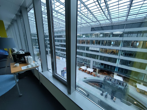 Read moreBusiness and shopping complex at the airport The Squaire is an office building in Frankfurt, Germany. It was built between 2006 and 2011 on top of an existing train station (Frankfurt Airport long-distance station) near Frankfurt Airport. The building is 660 m long, 65 m wide, 45 m high, and has nine floors. With a total floor area of 140,000 m2 (1,506,900 sq ft) it is the largest office building in Germany.1 Its dimensions and design make it a groundscraper. The Squaire is directly connected to Terminal 1 of Frankfurt Airport through a pedestrian connecting corridor. The Squaire has it all. Several restaurants, hotels, stores , access to trains, airport, taxis,rental...