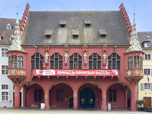 Read moreThe Historisches Kaufhaus (Historic Merchants’ Hall) is a Renaissance-era building on Freiburg’s Münsterplatz. Completed in 1530, it served as the city’s administrative and commercial hub, housing customs offices, trade rooms, and storage for goods. The building’s striking deep red façade and richly decorated oriel windows reflect the wealth and civic pride of Freiburg during the height of its trade with the Upper Rhine and Alpine regions.