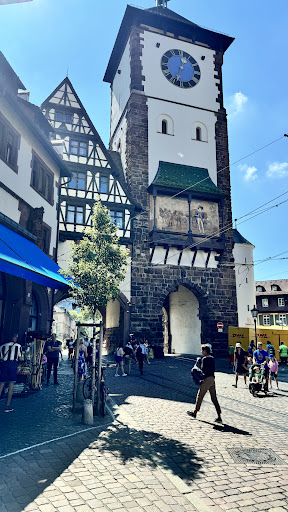 The Schwabentor is one of the only two remaining old city entrances of the fortified city of Freiburg. It is a beautiful tower with a special architecture that lets you into the city center.