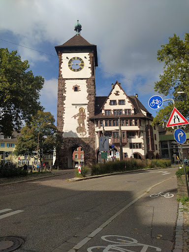 Read moreThe gate tower built around 1250 was originally open towards the inside of the city and was only enclosed with a stone wall in 1547. In 1572 Matthias Schwäri painted a picture of a merchant with a cart on the inner wall. In the 19th century, this picture sparked a legend about a Swabian man who came to Freiburg with two barrels full of gold to buy the town. He was ridiculed, especially after it turned out that the barrels only contained sand and pebbles. Before his departure, his wife had secretly replaced the gold with a...