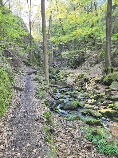 Read moreNicht wenige Besucher des Rabenauer Grundes übersehen das kleine Hinweisschild, wenn sie von Hainsberg der Roten Weißeritz folgend die beiden meist ruhig fließenden Teilarme des Buschbachs überqueren. Die Wanderer aber, die dem Schild folgen und auf etwas mühsamem Hangweg in die Somsdorfer Klamm eintreten, stehen in einer beeindruckenden Felsenwelt, in die sich der Buschbach tief eingeschnitten hat. Nach ausgiebigem Regen und gut gefülltem Buschbach ist der über zwei Stege, eine Brücke und Steinstufen rechtsseitig nach Somsdorf führende Weg ein besonderes Erlebnis. Dabei wird die Felsengruppe der Teufelskanzel passiert. Der früher über Stufen linksseitig weitergeführte, ebenfalls sehr schöne Hangweg bis in den oberen Klammauslauf oder zur oberen Himmelsleiter ist noch erkennbar, wird wohl aber nicht...