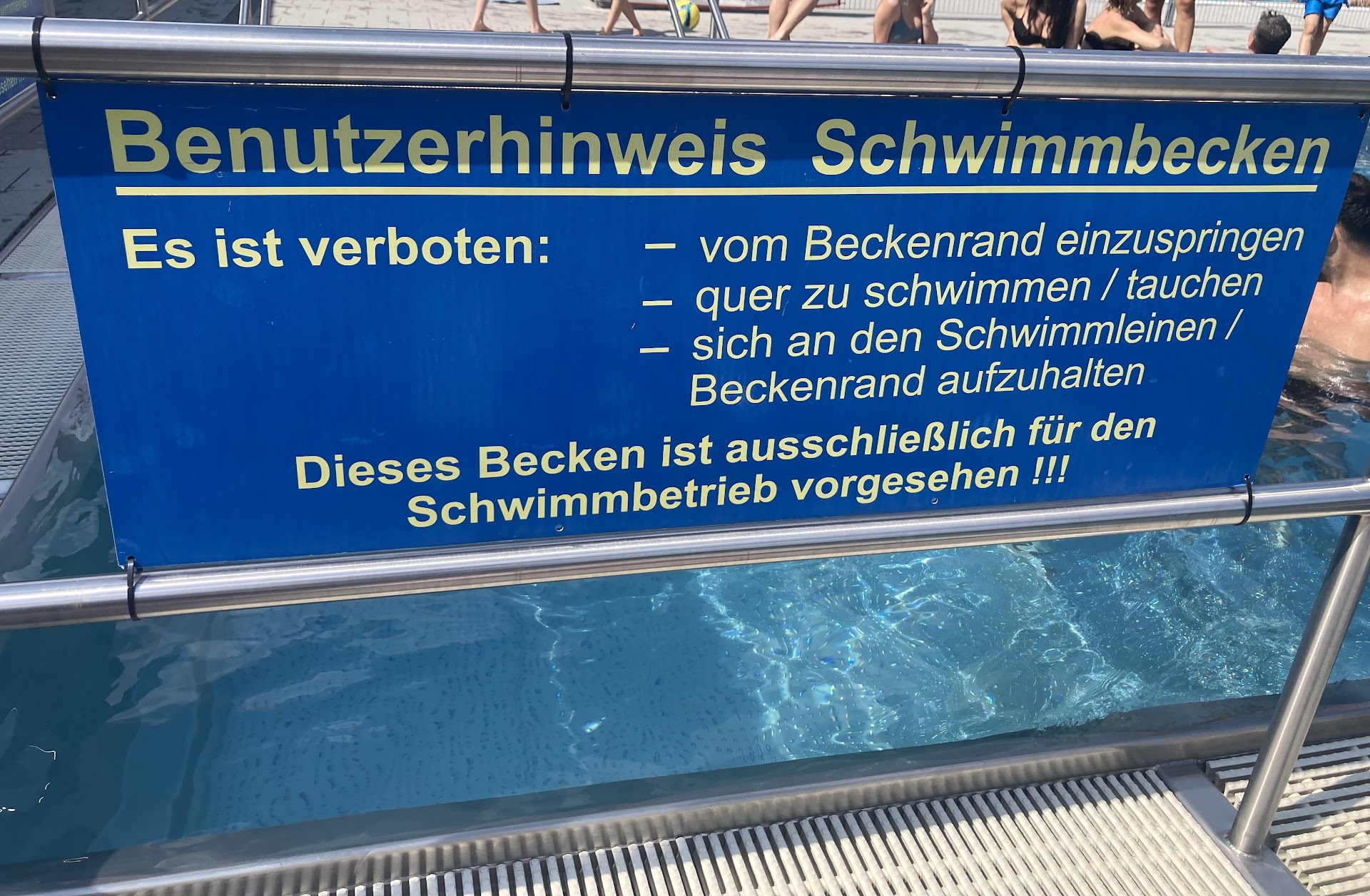 Wir fingen an Ball zu spielen (EIN KLEINER SOFTBALL ) wir wurden von dem Bademeister ermahnt in kleineren rahmen spielen zu sollen was soweit verständlich war aber uns gesagt wurde unser Ball sei zu hart ( aber wir den Tag da vor ein LEDER VOLLEYBALL dabei hatten da wir nicht wussten das das nicht in Ordnung ist)
