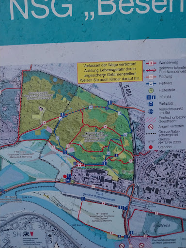 Read moreHistorisch sehr interessant ist im hinteren Bereich des Naturschutzgebietes das Gelände der ehemaligen Dynamit Nobel Werke. Dort liegen weit verstreut die von der britischen Besatzung die am Ende des zweiten Weltkrieges gesprengten Produktionsstätten und Bunker, wild überwuchert von der Jahrzehnten alten Vegetation! Aber Obacht! Man sollte den etwas spärlichen Hinweisen auch glauben und auf den Wegen bleiben! Das ganze Gelände ist durchzogen von sehr versteckten und überwucherten Betriebsschächten der damaligen Dampfdruckleitungen der Produktion! Da hineingestürzt bedeutet mächtige Schmerzen oder massive Verletzungen! Also nix für herumtollende...
