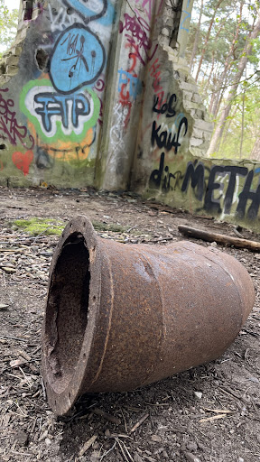 Read moreLange Zeit stand hier eine Munitionsfabrik. Die Reste sieht man noch heute. Im Krieg wurden hier Zwangsarbeiter eingesetzt. Die Fabrik wurde durch Bomben stark zerstört, nach Ende des Krieges von den Alliierten gesprengt. Man kann viele Bombenkrater erahnen. Überall liegt noch Botonschutt, neuzeitlich beschmiert. Die nahe B 404 sorgt für einen ständigen Geräuschpegel im östlichen Teil des Gebietes. Ein schaurig-schöner Ort, dessen hügelige und waldreiche Landschaft mit den Sanddünen zwar schön, aber alles andere als "romantisch" ist. Feinfühlige Menschen werden hier sehr zwiespältige Empfindungen haben. Im westlichen Teil des Geländes wirkt alles friedlicher, naturbelassener und nicht von Rüstungsproduktion und...