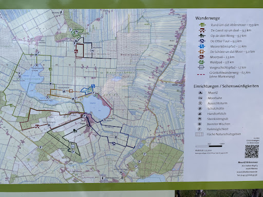 UPDATE Juni 2023: Der Bohlenweg ist komplett erneuert worden und auĂerdem wurde der Pfad insgesamt einer Ăberarbeitung unterzogen. Absolute Empfehlung fĂŒr Naturliebhaber ! Sehr einfach und bequem zu belaufen, ein paar schöne Sitzgelegenheiten wurden auch aufgebaut. Der Pfad ist insgesamt (kompletter Rundweg mit etwas StraĂe) etwa 1.3 Kilometer. Wer hier in der Gegend ist sollte sich das nicht entgehen lassen. Man kann am Eingang ganz gut parken. Und nach dem Pfad noch einen Blick auf den Flögeliner See werfen, an der Ostseite ist ein Aussichtsturm, auch da kann man gut parken. Erstbesuch im Juni 2022: etwa die HĂ€lfte ist ein Bohlenweg, der in sehr schlechtem Zustand ist. An einigen Stellen gefĂ€hrlich, die BrĂŒcke ĂŒber den EntwĂ€sserungskanal wird irgendwann einstĂŒrzen. Man sollte den Bohlenweg entweder abbauen oder in Stand setzen. Es befinden sich sogar noch (die typisch braunen) Hinweisschilder an den zufĂŒhrenden StraĂen, das wirkt wie eine Einladung zum Erkunden - trotz der Verbotsschildern an den direkten EingĂ€ngen zum Pfad. Vom Naturerlebnis her viel unmittelbarer als die Fahrt mit der Ahlenmoor-Bahn, die etwa 2 Kilometer entfernt im Moorinformationszentrum stattfindet. Dort ist zwar auch ein Wandweg "Moorpad", aber der wirkt wie klinisch rein gegenĂŒber diesem Pfad. Unbedingt empfehlen möchte ich noch das Ahlenmoor sĂŒd-westlich vom Ort Ahlen-Falkenberg, das ist vielleicht der schönste Teil des Moores. Am Ende der SeestraĂe (dort stehen die letzten HĂ€user des Ortes) kann man nach SĂŒdwesten auf einem Pfad laufen und kommt durch einen Moorbereich, der teilweise noch sumpfig ist. Man kann kommt von dort auch an das Ufer des...