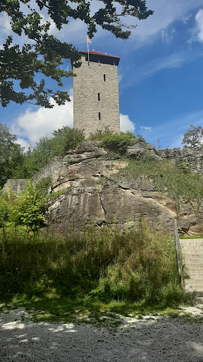 Read moreDer Aufstieg vom Parkplatz aus ist zu Fuß gut zu bewältigen. Ich war mit dem Fahrrad dort und radelte bis fast zum Burggraben hoch und nachdem die Burgschänke bereits geschlossen hatte. Die Burgschänke, ehemals Pferdestall, hat bis 17:00h geöffnet und bietet allerhand kleine und etwas größere Brotzeiten an. Seit vergangenem Jahr gibt es eine virtuelle Burgführung per QR-Code zum Herunterladen, die recht interessant gestaltet ist. Ich bin entspannt herumspaziert und stellte mir dabei das Leben in früheren Zeiten vor. Der Turm ist schnell erstiegen und bietet eine wundervolle Aussicht auf die Umgebung und ist im August um sieben Uhr abends in traumhaftes Licht getaucht. Wie das Erlebnis unter Tag und mit vielleicht vielen Besuchern aussieht, kann ich nicht beurteilen, am Abend ist es bezaubernd und stimmungsvoll und absolut...
