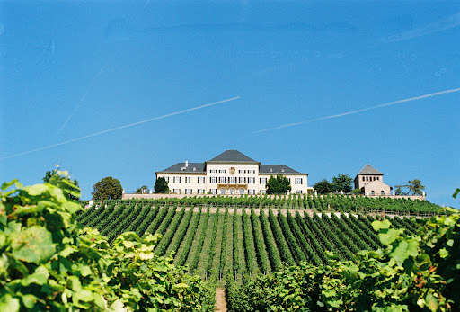 Schloss Johannisberg is a beautiful castle complex in the district of Geisenheim in the Rheingau, Hesse, Germany. Wine has been grown at Schloss Johannisberg for 1200 years, and exclusively Riesling since 1720. This is the cradle of one of the oldest and finest grape varieties in the world. With a traditional winery and the associated vineyard, Schloss Johannisberg proudly calls itself "THE FIRST RIESLING WINERY IN THE WORLD. "