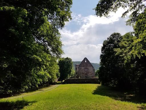 Read moreDefinitely worth the drive through some of the Main Spessart forest to see the beautiful ruins of a monastery. A gravel road gets you there and you can see the ruins from where you park. It's an easy walk the rest of the way. We navigated the grounds with a sturdy umbrella stroller. There are several picnic benches and plenty of shade, so a great place to have some lunch. You can walk up to the top the tower. Highly recommend...