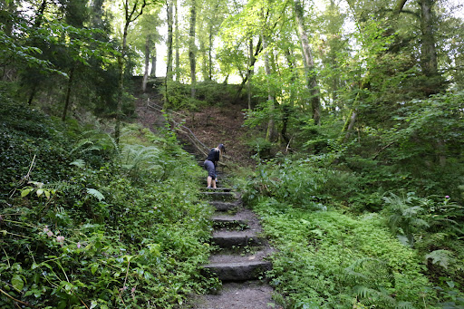 Der Weg nach unten ist eine rutschige Angelegenheit durch die ungleichmäßigen Steinstufen, auch wenn es schon paar Tage nicht mehr geregnet hat. Festes Schuhwerk würde ich nur empfehlen. Bis dreiviertel vom Weg ist ein Geländer vorhanden ab der Hälfte besteht es aus Holz was auch etwas wackelig ist. Ab dem letzten Viertel nach unten ist auch kein Geländer mehr zum festhalten vorhanden.