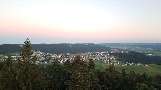Oben erwartet einen dann ein Aussichtsturm mit einer Höhe von 33 Metern. Da man sich oberhalb der Baumkronen befindet, bietet sich ein grandioser Rundumblick über Baar, Zollernalb, Heuberg und die Baar Alb hin zum Schwarzwald und den Alpen.