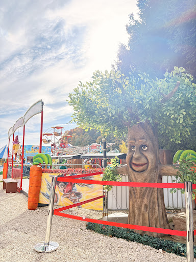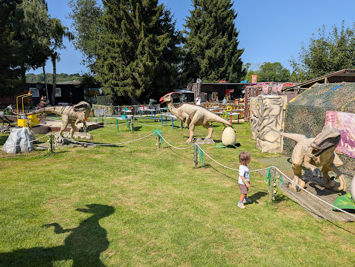The rides are very old and crowded together, rusty, without security measures (no belts, no nothing), and there's no theme: Hogwarts-Express train right next to the entry, Marilyn Monroe guarding a helicopter ride, Elvis guarding some small boat rides, in the back there's a Flintstones train for small children. Then there's the Dino park, where Dinosaurs and gorillas are put together (!!!). Children under 4 must be accompanied on the rides, but adults are not allowed; max age is 12-14 years old, depending on the ride. Rust, old paint and marks of intensive use are visible everywhere. After 1h we were convinced we could go home, as it was noon, and there were no amenities available (on a Sunday, 3rd of Nov). For that adults pat 7 euro, and...