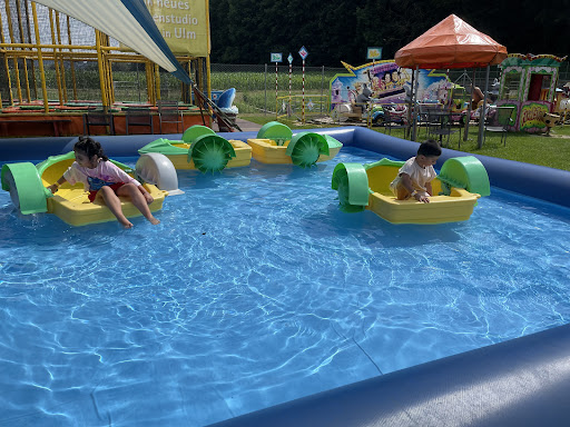 ES IST ALLES IN BETRIEB!!!!! Wenn man irgendwo fahren möchte einsteigen und es geht los, man muss nirgendwo warten oder sonst irgend etwas!!!! Ein kleiner beispiel: wenn man aufs Volkfest geht, fährt man 3 bis 4 mal Karussell und ist schon über 10 Euro los!!! Und bei uns zahlen sie 10 Euro und können von 10 bis 18 Uhr, Karussells,Eisenbahnen,Riesenrad,Schiffschaukel,Wasserkarussell,Autoscooter,Minikarussell,Hüpfburgen u.s.w so oft wie sie möchten benutzen!!!! Also ist es eigentlich für 10 Euro geschenkt.