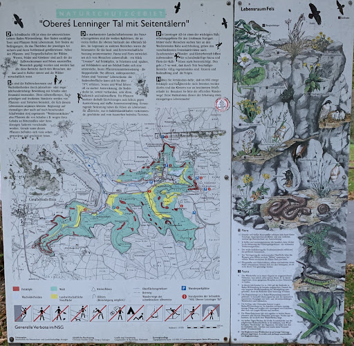 Das Donntal ist wunderschön. Am besten parkt man auf dem kostenlosen Wanderparkplatz in Lenningen- Gutenberg der sich direkt am Ortseingang befindet wenn man von Richtung Kirchheim kommt. In nur wenigen Gehminuten gelang man zum Donntal. Auf einem breiten Wanderweg entlang der Donn gelangt man zu den wunderschönen Sinterterassen. Toller Ausgangspunkt für Wanderungen zum Beispiel zur Mondmilchhöhle und der Ruine Sperberseck. Liebe Leute groß und klein haltet doch die Umwelt rein, nehmt den Abfall mit nach Haus, dann sieht der Albrand viel...