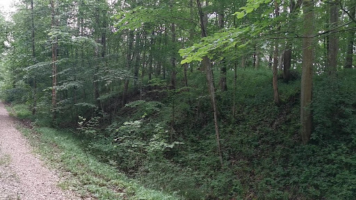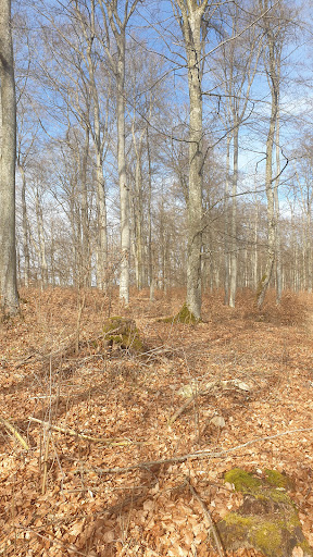 Aaaber!.... wenn man den Anstieg vom Parkplatz aus im Wald macht, glaubt man, man geht an einem steilen Hang entlang - und das ziemlich lang. Dieser "steile Hang" ist aber noch gar nicht der Berghang! Wenn da mal hochklettert, was gar nicht so einfach ist, stellt man fest, daß da über die ganze Länge des Hügels genau bis zu der Sperrmauer ein mehrere Meter tiefer Graben ist, von dem aus der steile Abhang des Hügels erst anfängt!