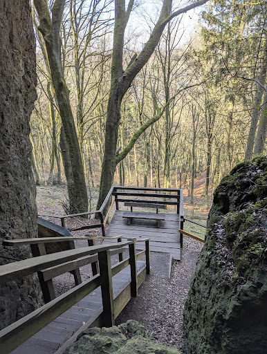 Read moreEin schöner Ort für Wanderungen und mega schöne Aussichten. Wir haben unten geparkt in der Straße und sind über einen Wiesen wanderweg ( nicht ausgezeichnet) an einer Kuhweide vorbei, den Berg hinauf gestiegen. Der Anstieg hat es in sich, für ungeübte oder Menschen mit Einschränkungen, aber es ist machbar. Oben angekommen haben wir uns rechts gehalten, und es ging weiter leicht Bergauf. Vorbei an Wiesen und Felder. Dann kommt nach kurzer Zeit eine (Kreuzung) dort läuft man dann links und weiter hinauf, bis man zu einem Kreuz kommt. Hier am Kreuz kann man sich etwas wünschen wenn man einen Mitgebrachten Stein dabei hat. Ab dem Kreuz muss man weiter hinauf, das sieht man dann wo es lang geht. Nun geht es leicht wieder hinunter bis man zu den Treppen gelangt, die muss man hinabsteigen und an den großen Felsen vorbei, den Weg entlang. Man läuft direkt auf die Buchenlochhöhle zu. Die Treppe wenn man sie mit mehreren besteigt ist etwas wackelig. Ein schöner Ort. Wieder zurück das ganze, die Treppen hinauf und wenn man oben angelangt ist rechts halten dann kommt man zu einem tollen Aussichtspunkt an dem man die schöne Landschaft...