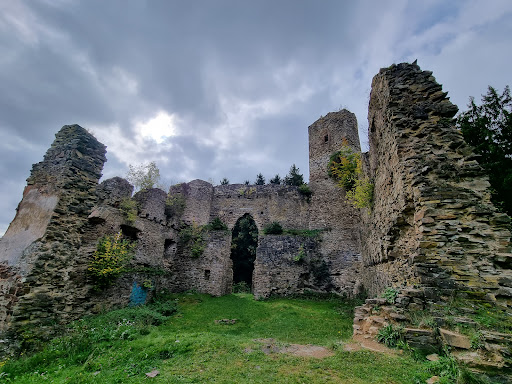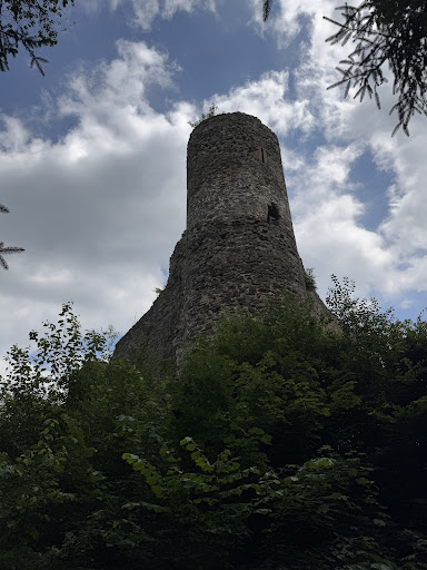 Bei meinem Besuch war kein Mensch vor Ort, dafür aber ein vorbereiteter Lagerfeuerplatz mit größeren brennenden Holzscheiten mitten in der Ruine. Das wirkte ein wenig mystisch und auch etwas witzig, fast so, als würde gleich ein rastender Ritter aus dem Wald auftauchen. Für eine kurze Rast mit Aussicht auf die Umgebung auf jeden Fall einen...