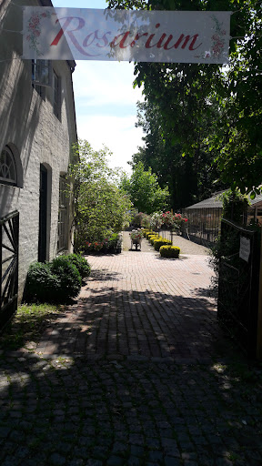 Read moreDas Tor zum Schloss ist leider geschlossen, so daß das Rosarium nur über den Haupteingang zu erreichen ist. Insgesamt macht der Garten einen unstrukturierten und ungepflegten Eindruck. Die "Skulpturen" mögen noch Geschmackssache sein, aber Wege und Beete sind offensichtlich schon länger nicht mehr gefegt bzw. geharkt worden (und dabei meine ich nicht natürliche naturbelassene Rasenflächen etc.), der elektrische Rasenmäher steht defekt nehmen seiner "Garage" und der Teich sieht eher traurig aus. Schade und wahrscheinlich einen Mitgliedermangel (oder mangelnder Motivation der Mitglieder geschuldet), denn die Anlage hat durchaus Potential und wäre eine tolle Ergänzung zum Schlosspark. So gibt's von den meisten Besuchern sicherlich eher keine...