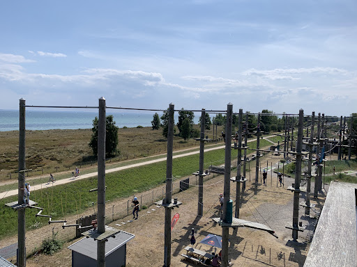 Read moreSchöner Kletterpark direkt an der Ostsee, ca. 15-20 Radminuten von Grömitz entfernt. Toiletten sind im Nebengebäude vorhanden. Wir haben online gebucht und konnten pünktlich anfangen, es waren selbst um 11 Uhr in der Hochsaison nicht zu viele Besucher da. Nach einer umfangreichen Einweisung mit allen Informationen und einem kurzen Testparcours konnte ich mit beiden Kindern alle Parcours klettern. Selbst für kleinere Kinder um die 1,20 m ist alles gut zu schaffen, wenn sie sich ein bisschen was zutrauen und mindestens ein Erwachsener dabei ist. An allen Stationen gibt es zwar Holzklötze zum Draufstellen, aber die Kleineren brauchen doch öfters mal Hilfe beim Umhängen der Karabiner. Das System ist super, da immer einer der Karabiner eingehakt ist. Es gab auch ein paar kleinere Kinder, die nach einer Station wieder runter wollten, es sind halt mindestens 4 m Höhe und es gibt KEINEN Kinderparcours. Für geübte Klettermaxe ist alles problemlos zu schaffen, Profis sind vielleicht unterfordert. Aber wir hatten eine Menge Spaß und kommen...