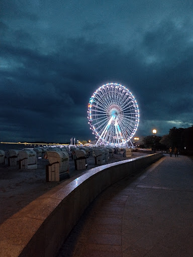 Read moreSehr freundliches Personal, stabile Gondeln und nahezu ruckfreies Drehen (sonst hätte ich es nicht durchgestanden)-war nur für meine Tochter mit drinnen. Derzeit werden für Erwachsene 9 € aufgerufen. Dafür fährt man insgesamt vier Runden (etwa zwölf Minuten). Ein Zustieg erfolgt, so meine Erinnerung, spätestens alle drei Minuten. Eine Gondel hat Glasboden. Der Wind weht durch die Türen herein, aber die Gondel selbst ist vollständig umschlossen. Die Aussicht ist wirklich toll... zumindest Richtung Meer. In die andere Richtung habe ich mir nicht wirklich getraut zu schauen. Sind so etwa 50 Meter Höhe. Wer es sich aber traut, der/die sollte es aber unbedingt einmal...