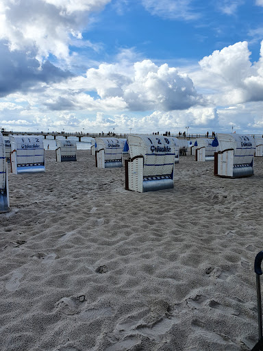 Read moreAb dieser Saison mit neuem Besitzer (Basti Weidemann), der sich sehr viel Mühe gab und zuvorkommend war. Lage 1a, direkt neben der Seebrücke und vor Fressmeile (Pier 54 ) und nahe bei den öffentlichen Toiletten. Fahrradständer und Strandparkplatz (gegen Gebühr) nur ca. 50 m entfernt. Strandkörbe, wie früher bei Frau Gröschke sehr gut in Schuss. Strandkorbpreise von Reihe 1 (am Wasser) bis hinten gestaffelt. In der Saison ist eine...