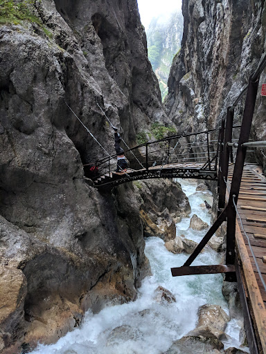 ➡️ Weiter ging es durch die Höllentalklamm. Hier muss Eintritt gezahlt werden, 5 Euro pro Person, aber es lohnt sich!!!!! Tiefe Schluchten und Wasserfälle, an denen man auf schmalen Wegen vorbei muss. Uriger wandern geht nicht. Hier herrscht immer ein feucht-kühles Klima, das ist nicht schlimm, aber man sollte darauf vorbereitet sein und sich ggf eine waserdichte Jacke mitnehmen.