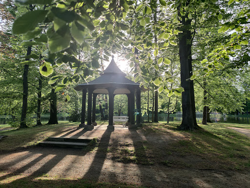 Read moreEin wunderschöner Ort zum verweilen, zum flanieren, zum joggen und zum entspannen. Der Garten/Park ist sehr schön angelegt. Er bietet 3 Teiche, einen Spiegel-Teich, einen Flaschenteich und einen Teich mit Insel. Warum die so heißen, erkennt man, wenn man vor Ort ist😅 Es gibt Enten, Gänse und leider nur noch einen schwarzen Schwan . Jedoch sind eine Vielzahl von verschiedenen Vogelarten und Fröschen zu hören. Auf der Insel befindet sich ein Pavillon und wenn die Sonne mitspielt, hat das schon was magisches. Im hinteren Teil des Parks, befinden sich viele Bäume, fast schon waldartig. Im dazugehörigen Schloss kann man sich vermählen und anschließend einen Baum pflanzen. Ein paar schöne Skulpturen gibt's auch. Fazit: ein Besuch lohnt sich...