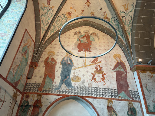 Die Kirche wirkt auch nicht verstaubt, d.h. es ist keine trockene Heiligenbilderschau, wie man sie leider oft in solchen Kirchen findet, sondern man hat wirklich "das reine Wort", nur eben in Bildern mittelalterlicher Art.