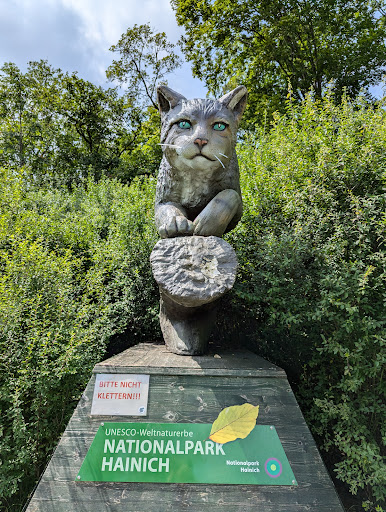 Read moreEin Ausflug in das Wildkatzendorf Hütscheroda ist vor allem auch mit Kindern lohnenswert. Die Anlage ist sehr schön gestaltet und bietet vier Katern in den einzelnen Gehegen viel Platz zum Klettern und Verstecken. Es wird vier Mal am Tag gefüttert und die Mitarbeiter vermitteln dabei viel zum Thema Wildkatzen im Hainich und in ganz Deutschland. An das Gelände schließt sich ein Luxgehege an, in dem ein Elternpaar mit seinem Nachwuchs lebt. Diese bekommt man jedoch nur mit viel Glück zu Gesicht. Für Kinder gibt es einen nahegelegenen Spielplatz und in der Wildkatzenscheune gleich zu Beginn kann man einige Dinge zum Thema Wald, Wiese und Wildkatzen kaufen. Kinder haben dort in einer großen Spielecke die Möglichkeit sich die Zeit zu vertreiben. Wer dann noch Lust hat, kann entweder den kleinen Wildkatzenpfad laufen, der mit knapp zwei Kilometern auch für Kinder geeignet ist. Wer mehr Ausdauer hat, der läuft den sieben Kilometer Pfad. Es lohnt sich wirklich, man wandert durch den Hainich mit seiner tollen Natur und kommt an dem großen Holzturm Hainichblick vorbei. Von dort hat man eine sehr gute Aussicht auf den Thüringer Wald, die Wartburg und den Hainich. Es gibt schöne Sitzplätze und sogar eine Toilette. Wer Freude an Kunst hat, der wird sich sicher auch an den verschiedenen Skulpturen entlang des...