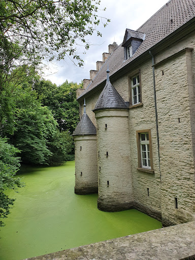 Read moreEin sehr schönes Wasserschloss mit kleinem Museum und Hofcafe. Wir waren zum ersten Mal mit unseren Enkelkindern dort und uns hat es sehr gut gefallen. Als erstes haben wir das Schloss einmal umrundet, was schnell ging. Stellenweise wurde der Weg etwas schmaler, ist aber dennoch für Mütter mit Kinderwagen zu bewältigen. Ich kenne selbst niemanden, der im Rollstuhl sitzt und bin deshalb unerfahren, aber ich denke auch Rollstühle (eventuell in Begleitung?) könnten den Weg schaffen. Zum Schlosscafe kan man sowohl mit Kinderwagen als auch Rollstuhl ungehindert vorkommen. Im Museum selber würde das allerdings nicht funktionieren, denn das Museum befindet sich über 3 Etagen verteilt, die man über Treppenaufgänge erreicht. Das Museum ist recht klein, aber sehr ordentlich und schön angelegt. Die Damen im Empfangsbereich/Kasse waren ebenfalls sehr nett. Die Enkelkinder bekamen sogar ein Mammut Poster geschenkt. Auch die Toiletten im EG waren recht ordentlich. Der Zugang ist ebenerdig. Das Café ist ebenfalls sehr ordentlich und sowohl der Chef als auch die Angestellten sind sehr bemüht die Gäste schnell und zur Zufriedenheit zu bedienen. Zahlen muss man allerdings im Café selber. Draußen wird nicht kassiert. Finde ich aber voll in Ordnung. Den Kuchen, der hier in den Rezensionen als wahnsinnig lecker beschrieben wird, haben wir (noch) nicht probiert, aber der sah verdammt gut aus und wird definitiv beim nächsten mal probiert. 😋 Wir hatten Eis und Eiscafe / Kaffee. Alles war super. Fazit: Wir hatten einen tollen Aufenthalt mit unseren Enkelkindern dort und kommen bestimmt wieder.