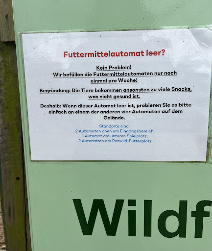 Read moreViel habe ich ehrlich gesagt nicht erwartet. Ein Wildpark auf so wenig Gelände... das wäre nicht mal komplett genug für rehe in freier wildbahn, aber was ich eobachtet habe hat mich dann doch geschockt. Die Rehe hatten weder Futter noch Wasser in den entsprechenenden Trögen. Einzige Futterstelle: Die Besucher. Keine Rückzugsmöglichkeiten, keine Trinkmöglichleiten und das bei über 30 Grad, bei Tieren die Dämmerungsaktiv sind. Diese Tiere wurden bewusst konditioniert tagsüber wach zu sein, den Besucher zu tolerieren. Tierwohl!? Fragwürdig. Die Ziegen fressen Pappschachteln, die Vogelvolieren sind völlug überfülltund winzig. Die Wachteln werden getrennt in 2 verschiedenen käfigen gehalten, statt sie zu sterilisieren und wenigstens einen Artgenossen zu haben. Die Kaninchen in dem ganzen Vogellärm. Wirklich wirklich schade, dass ihr euch das leistet. Meinr Frage: Ist ein Wildpark in Haibach wirklich notwendig,oder reicht es nicht vielleicht, wenn Schaulustige nach Bad Mergentheim...