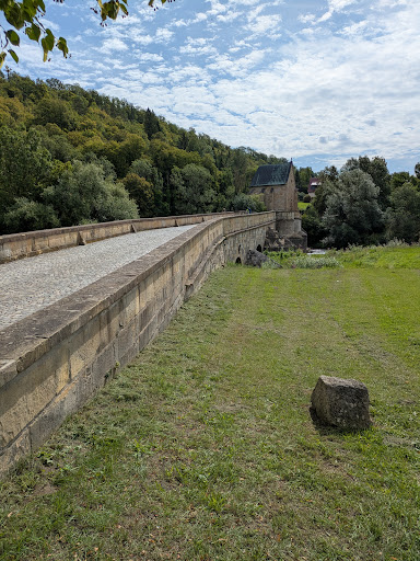 Read moreBau und Zweck: Die siebenbogige Steinbrücke wurde 1223 im Auftrag von Landgraf Ludwig IV. errichtet, um den Flussübergang der Werra zu erleichtern und den Verkehr zwischen den Residenzen Creuzburg und Wartburg zu sichern. Historische Ereignisse: Ein schützender Wehrturm am östlichen Brückenkopf wurde 1793 abgetragen. Umfangreiche Erneuerungsarbeiten fanden im 18. Jahrhundert statt, fortgeführt von Gottfried Heinrich Krohne. Zerstörung und Wiederaufbau: Teile der Brücke wurden am 1. April 1945 durch Sprengung zerstört und zwischen 1945 und 1952 wiederhergestellt. Bedeutung und Denkmalschutz: Die Werrabrücke gilt als die älteste erhaltene Steinbrücke nördlich des Mains und steht seit dem 1979 unter...