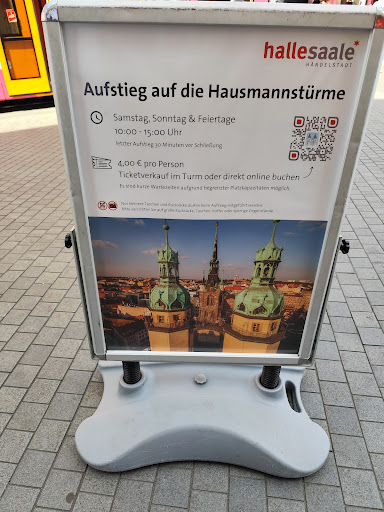 Read moreDie 83 Meter in die Höhe reichenden Hausmannstürme sind unverwechselbarer Teil der halleschen Silhouette. Ihr Name geht auf den schon im 16. Jahrhundert dort lebenden Türmer Hausmann zurück, der aus luftiger Höhe die Stadt überwachte und bei einem Brand alarmierte. Dazu benutzte er die im südlichen Turm befindliche Sturmglocke... Zu den erwünschten Fähigkeiten eines Hausmanns gehörte die Beherrschung eines Blasinstruments, damit abends vom Turm ein Abendchoral erklingen konnte. Diese Tradition wird auch heute noch von Turmbläsern gepflegt... Bis 1916 lebte der letzte Türmer mit seiner Familie über der Stadt... Die Baumeister Caspar Krafft und Nickel Hoffmann gestalteten den Kirchenbau zwischen 1529 und 1554 an der Stelle zweier mittelalterlicher Kirchen, deren Turmpaare in angepasster Form in den Neubau eingefügt wurden... Der Aufstieg über rund 225 Stufen ermöglicht Besuchern einen außergewöhnlichen Rundblick über die Saalestadt... Eine Besichtigung lohnt sich bei jeder Jahreszeit und ist sehr empfehlenswert! Wer sich traut, kann sich hochoben im Hochzeitszimmer das...