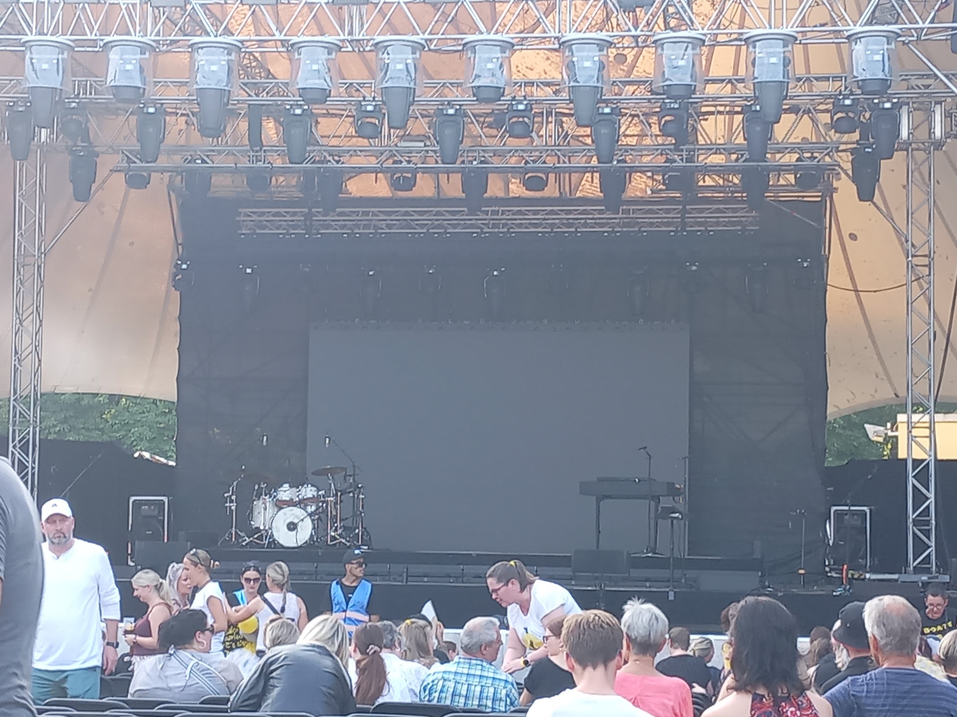 Parken muss man etwas weiter vom Gelände weg wenn man nicht früh genug vor Ort ist. Glücklicherweise haben uns zwei sehr nette Damen vom Ordnungsamt bei der Parkplatzsuche unterstützt. An den öffentlichen Nahverkehr ist die Location sehr gut angebunden. Einlass, Catering und Merch war top organisiert.