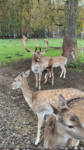 Es ist ein sehr schöner Wildpark. Es gibt jede Menge Rehe, Hirsche, Mufflons, Lamas, Hängebauchschweine die laufen frei im Park herum und man kann die Tiere füttern. Die fressen einem aus der Hand und einige klauen das Futter aus dem Bollerwagen. Man kann Eicheln und Kastanien mitbringen zum Füttern. Es ist ein Erlebnis für groß und klein. Nur die Hirsche soll man nicht füttern da sie beißen könnten. Wölfe, Luchse, Wildschweine, Kängerus, Strauße, Emus, Kaninchen, Nerz, Wellensittiche, Nymphensittiche um nur noch einige zu nennen. Die laufen nicht frei rum. Ein Spielplatz für Kinder gibt es. Es gibt Bänke wo man verweilen kann und das mitgebrachte Essen verspeisen kann. Es gibt auch einen kleinen Shop wo es Kaffee,Tee, Getränke, Bockwurst im Brötchen und kleine Snacks kaufen kann. Es ist immer wieder einen Besuch wert. Wir waren 3 1/2 Stunden dort und sind mit unserem leeren Bollerwagen wieder nach Hause...