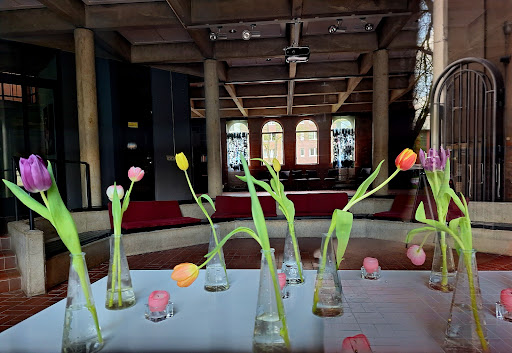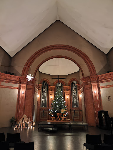 Read moreIn den frühen 1980ern abgebrannt. Wiederaufbau sehr gelungen. Hinter dem Altar ein schwarzweiß Glasfenster mit Helden der Befreiung. Z.B. Matin Luther King, Albert Schweizer, Sophie Scholl und andere. Der Andachtsraum ist im ersten Stock auch ganz klar gehaltene Fenster, bis zum Boden reichend und der Blick auf das Zentrum des bürgerlichen Eimsbüttels, vermitteln den Eindruck zu schweben. Das Publikum...